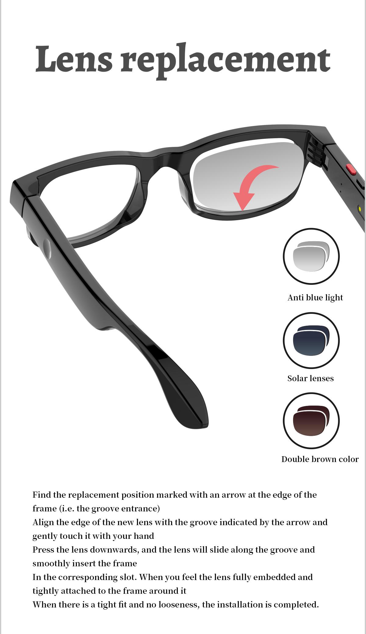 ▪Equipped with a -new 500w ultra-wide-angle camera and a dual-mic system,these glasses accurately capture everything you see and hear,Shoot high-quality photos and immersive videos.