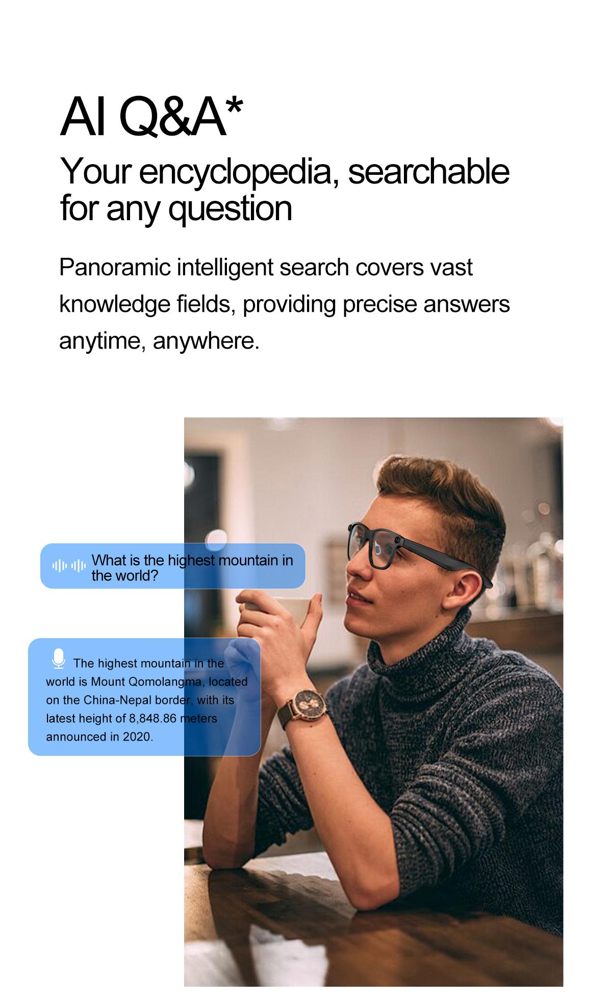 -picture recording 1.1080P 30 frames, automatically segmented and stored in Nand Flash: 2. Video format: Encode H.264, encapsulate AVI; 3. One click recording; 4. The video content supports APP transmission and anti shake algorithm; 5. Support WiFi transmission -take pictures 1. One click photography; 2. Image content, software 2000W, supports WiFi transmission -sound recording 1. One click recording; 2. Recording format: wav3. Supports WiFi transmission -OTA upgrade Connect to the app via Bluetooth for OTA upgrade -Music playback Support Bluetooth music push for mainstream phones such as iPhone/Android/HarmonyOS -Voice call When calling, click to answer the call/when making a call, click to hang up the call (physical key on the right leg); 2. When receiving a call, long press and hold for three seconds to reject the call (physical button on the right leg) -AI functionality Domestic bean buns/overseas chatgpt 1. AI image recognition 2. AI dialogue 3. Translation (Microsoft/University of Science and Technology) 4. Meeting minutes -Reminder sound Power on/off prompt sound/photo prompt sound/video prompt sound -Power on/off Left leg toggle switch, toggle forward to turn on, toggle backward to turn off -Pairing/unbinding 1. Scan the QR code to download the app; 2. Bluetooth search; 3. Automatic reconnection; -AI voice assistant Voice call 'Hello Little Orange' to wake up the glasses AI voice assistant -Left physical button Flip the switch forward to turn on and backward to turn off -Right physical button Take a photo, short press Recording, double-click the button to enter recording, short press to end recording Recording, long press for 2 seconds to enter recording, short press to end recording -Right touchpad Play/pause music: double-click on the touch area Adjust volume: slide forward to increase volume, slide backward to decrease volume Switch to next track: Three tap touch area