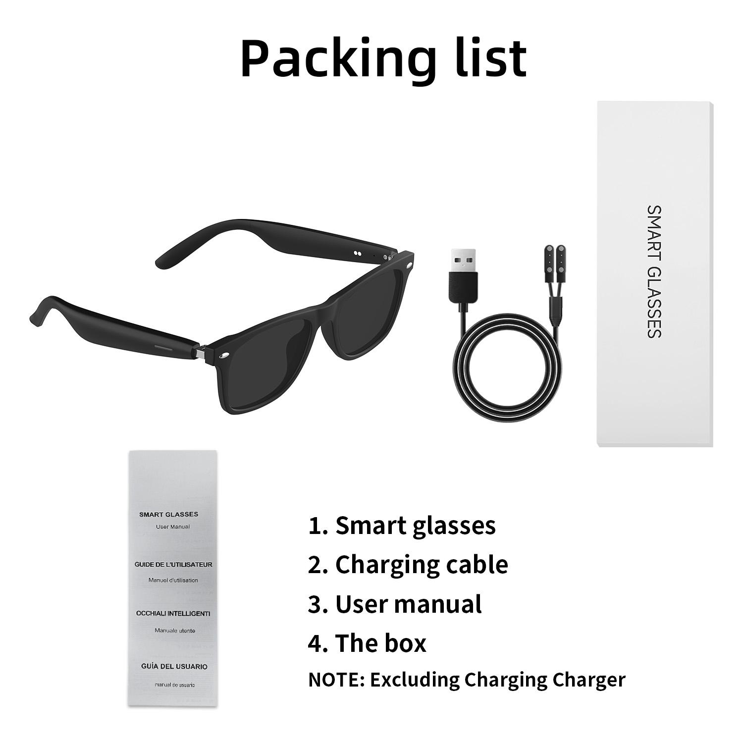 • HD UV Protective Lens :Protects your eyes from harmful UV rays while driving or outdoors. • Wireless Bluetooth Headset :Allows you to enjoy your music without the hassle of wires getting in the way. • Waterproof :Can be used in any weather condition without worrying about damage caused by water. • Active Noise-Cancellation :Blocks out external noise, allowing you to focus on your music or calls. • Smart Touch Control: Intuitive touch interface for music/call management. • Remote Control Photo: The phone's camera is on and you can take a picture by double-clicking on either side