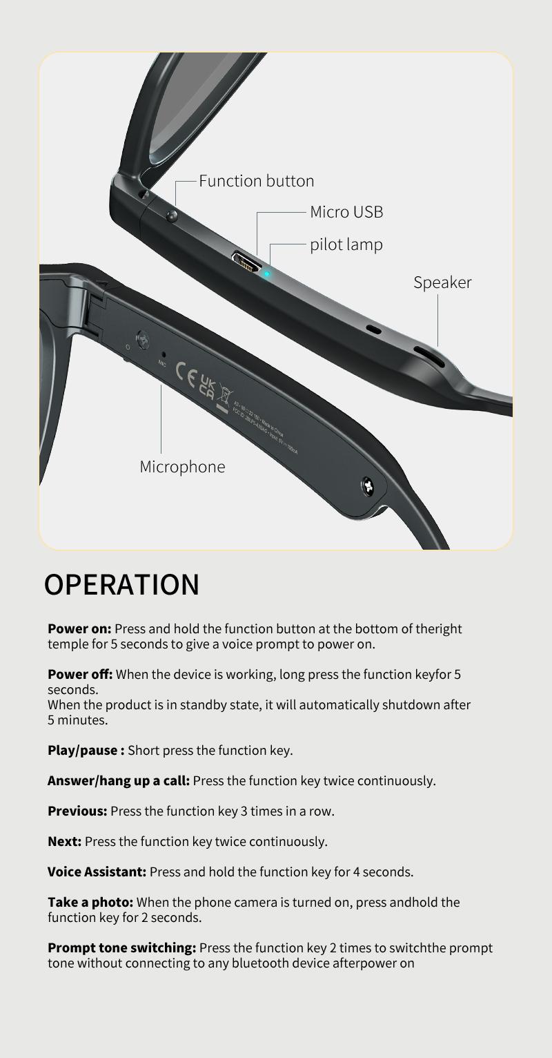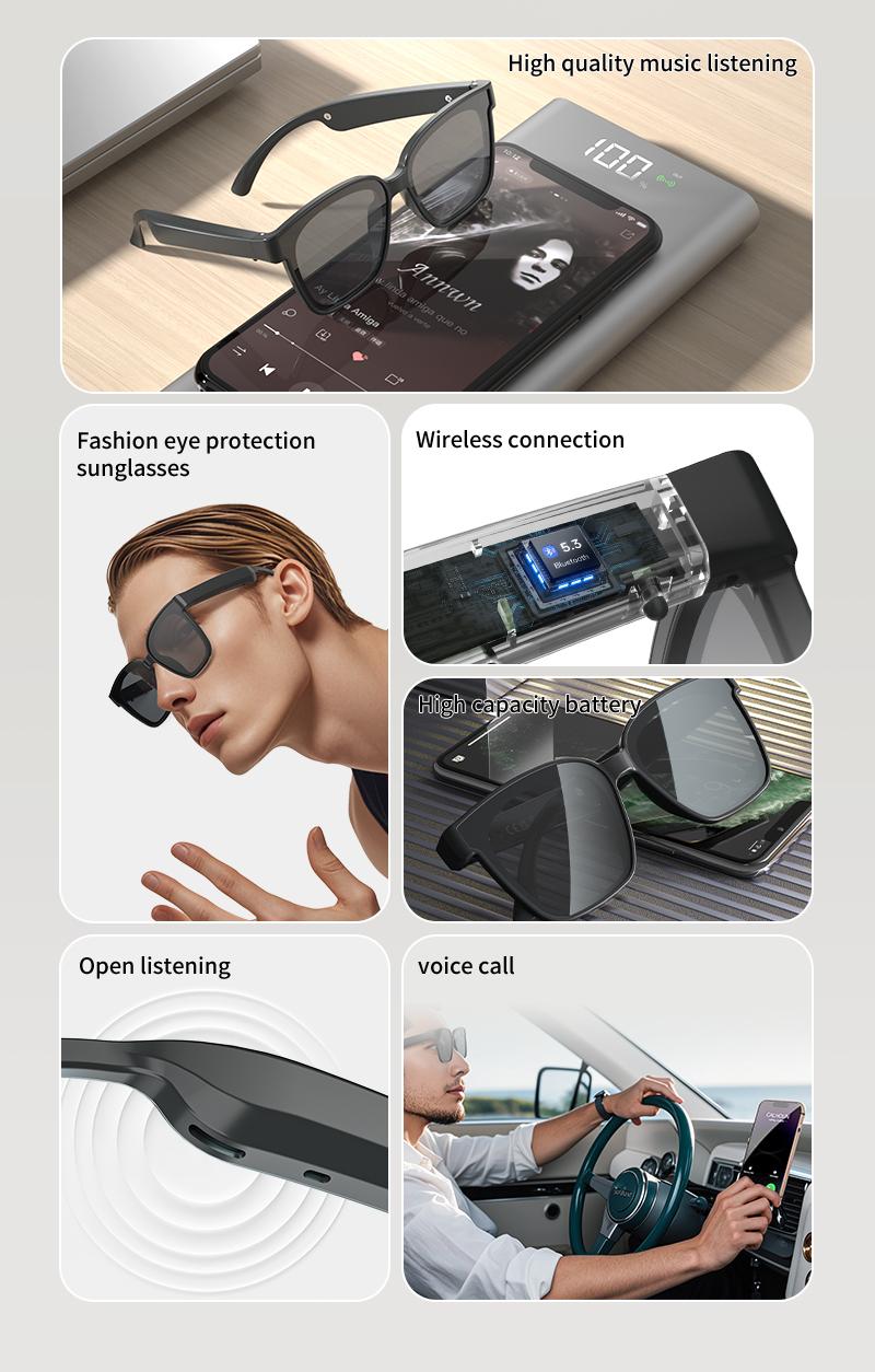 Smart Glasses Multifunctional Bluetooth Glasses Portable Wireless HD Headset With Waterproof Microphone Sunglasses