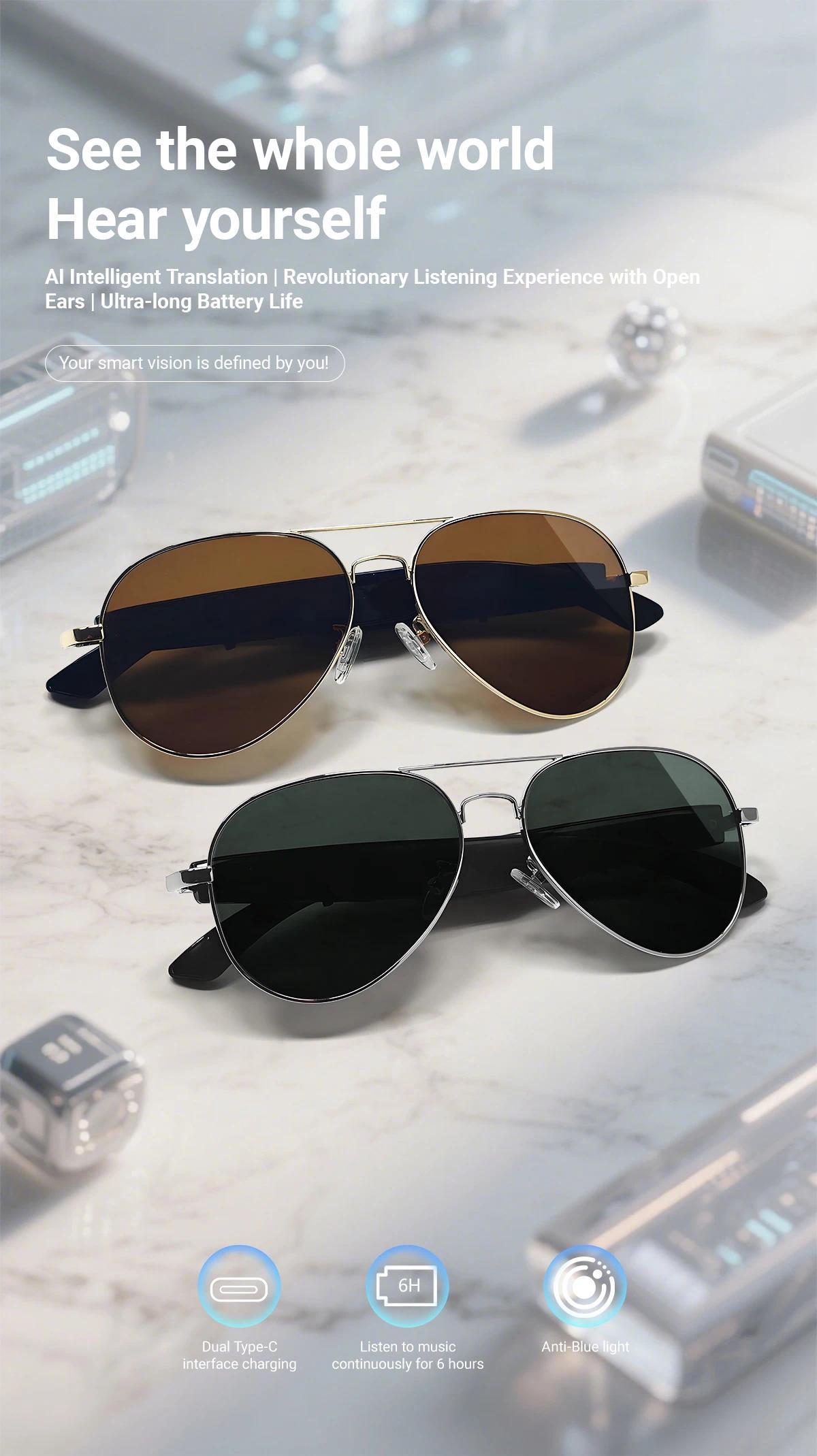 *AI Bluetooth Audio Call Fashion Smart Glasses: Equipped with functions such as AI intelligent voice and video real-time translation, AI dialogue and Q&A, AI intelligent translation (including translator mode and the translation mode combining glasses and mobile phone, which can customize the translation of more than 163 languages)