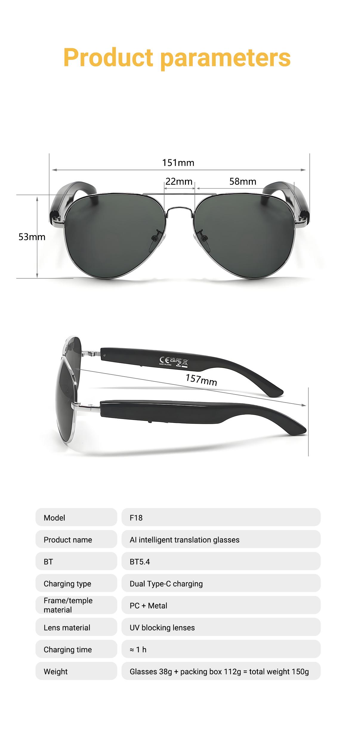 F18 Specification of AI Intelligent Translation Glasses