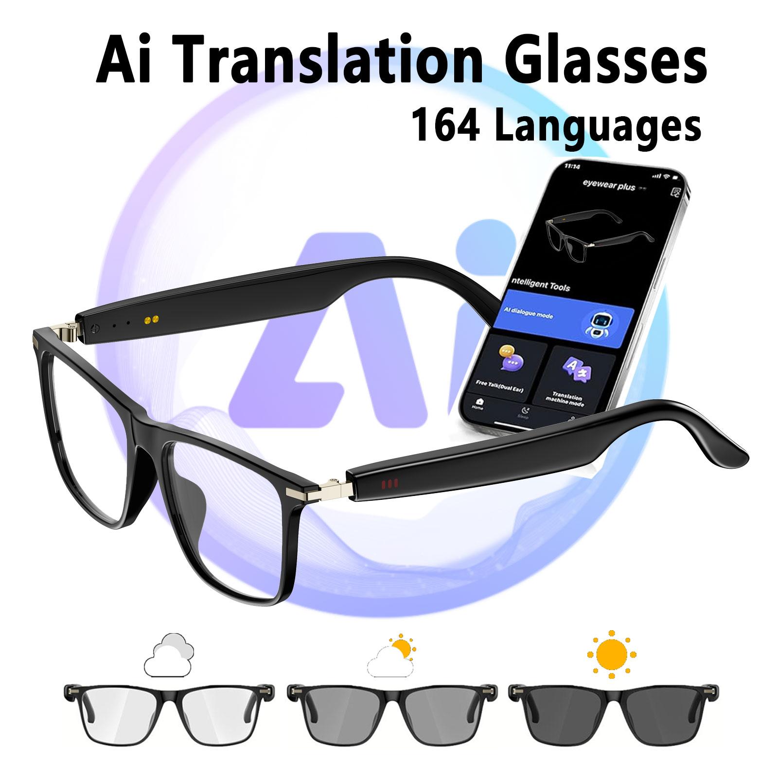 New AI smart translation glasses with photochromic lenses, supporting real-time app translation in 164 languages.